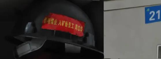 农民工周志华说他培训后有上岗证,但矿方却没有记录,上班多月,也不给发工资。图为周志华的安全帽和柜子。